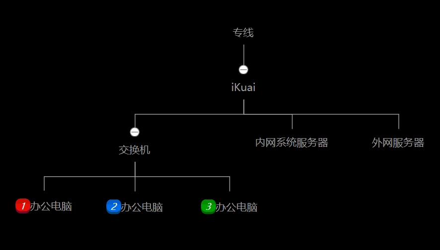以上用的是 ikuai 软路由,通过软路由分布网络,进行静态分配,IP 及物理地址 (MAC) 进行绑定,每个员工电脑使用拨号进行上网,从而可实现监控网络使用情况及违规上网查询。